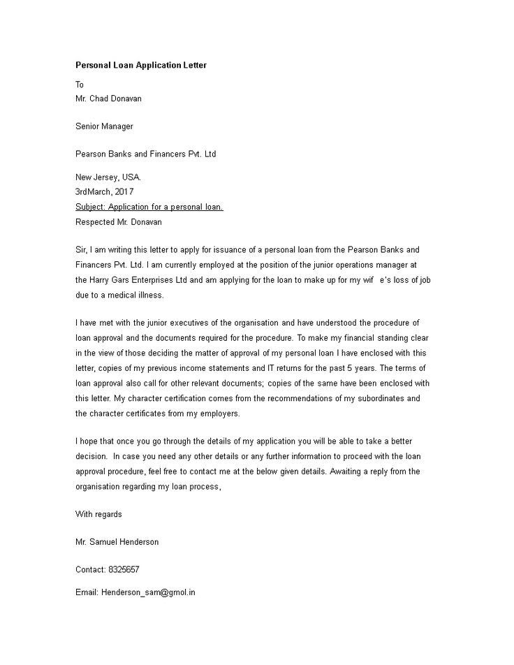Personal loan application letter sample to borrow funds from my company to finance my wedding? Getting confused about how to format a job application letter? Writing an application letter is only the first step, but it is still very important. I am writing this letter to ask for a loan so that i can expand my business. When loan officers complain about rejected applications that should have been approved, the common element in almost all of these cases is. The application must meet certain requirements. How do you start a letter of application? How shall i address this letter and what the best words describe my case to loan this money and i want to write a letter requesting loan from the comany for my sisters marriage. This is where you expound on your resume skills. Tips for writing a job application letter. A company application is in its correct terms called an official application letter. It feels more personal if you know who you are writing to and it definitely puts you on top of other applicants. In this loan application letter sample, the owner of a decorating business is requesting a loan in the amount of $25,000.00 to expand her warehouse space.